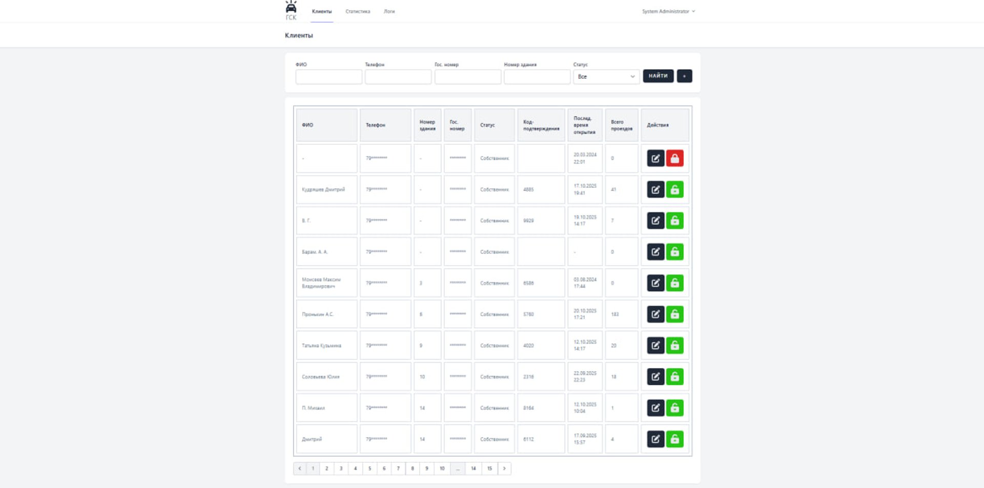 Председатель получает полный контроль над доступами клиентов, может управлять пользователями и просматривать наглядную статистику проездов. Клиенты используют удобное мобильное приложение для быстрого и безопасного въезда.
