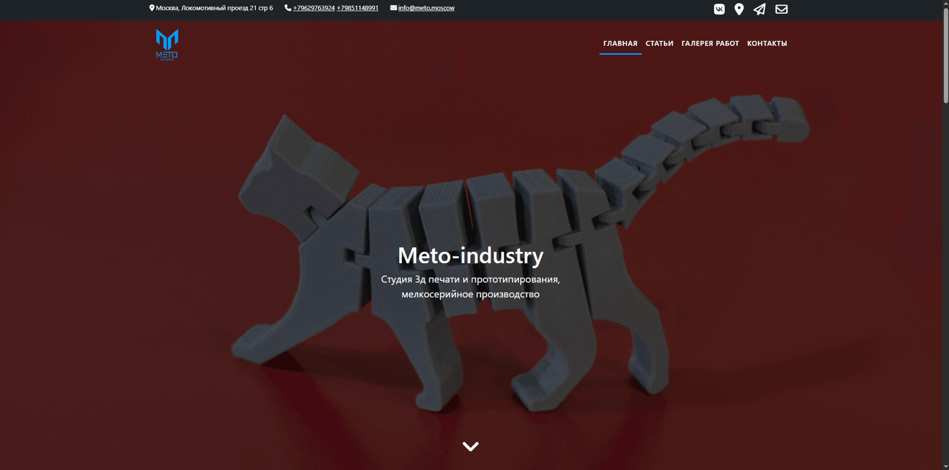 Сайт производственной студии Meto-Industry, специализирующейся на 3D-печати, ЧПУ и лазерной резке. Проект включает заказ услуг, загрузку файлов, интерактивный расчёт и каталог работ. Технологии: Laravel (личный кабинет), WordPress (главный сайт).